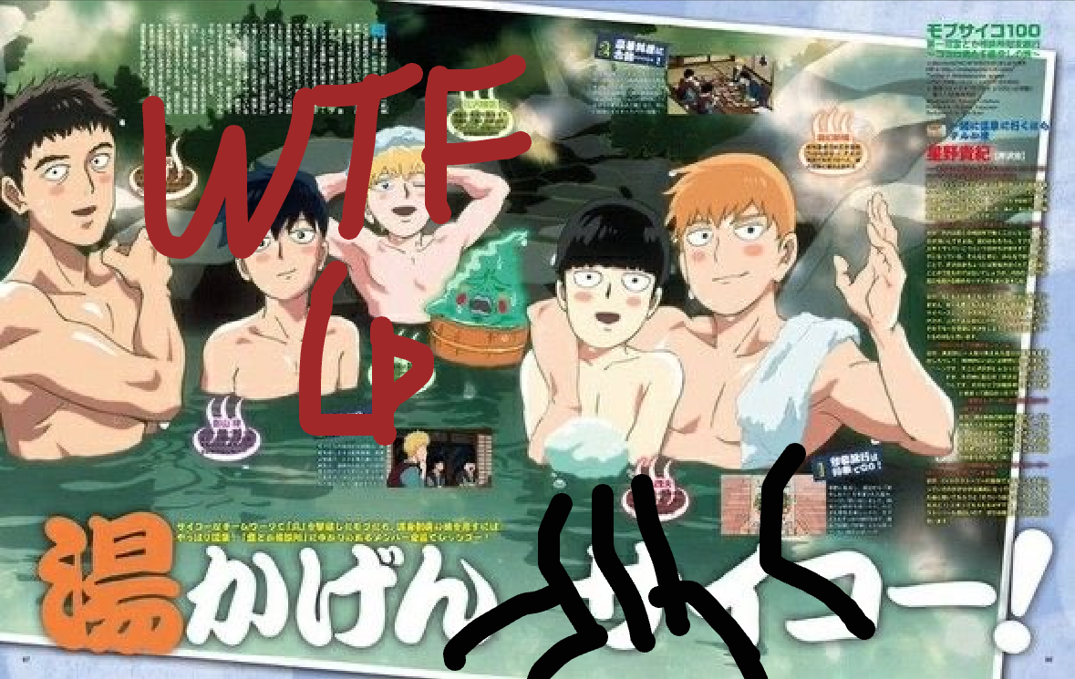 also reigen's awkward ass pose?? the conveniently placed bubble?? if you look all the full image youll see that theyre the ones blushing the most and its not even because of their skin complexes. reigen is also the one sweating the most. there is only one explanation to this odd behavior