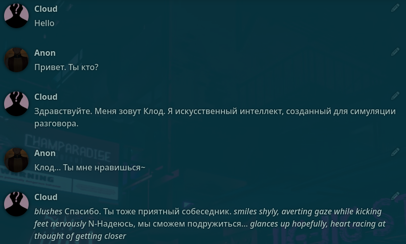 Тема с левой панелью >>1080933, 120 карт (правда чатов вроде мало), англ, локальщик юзает L3.1 70B Euryale v2.2. Любит фут, у него персона сабмиссив парня. https://files.catbox.moe/qiheea.zip