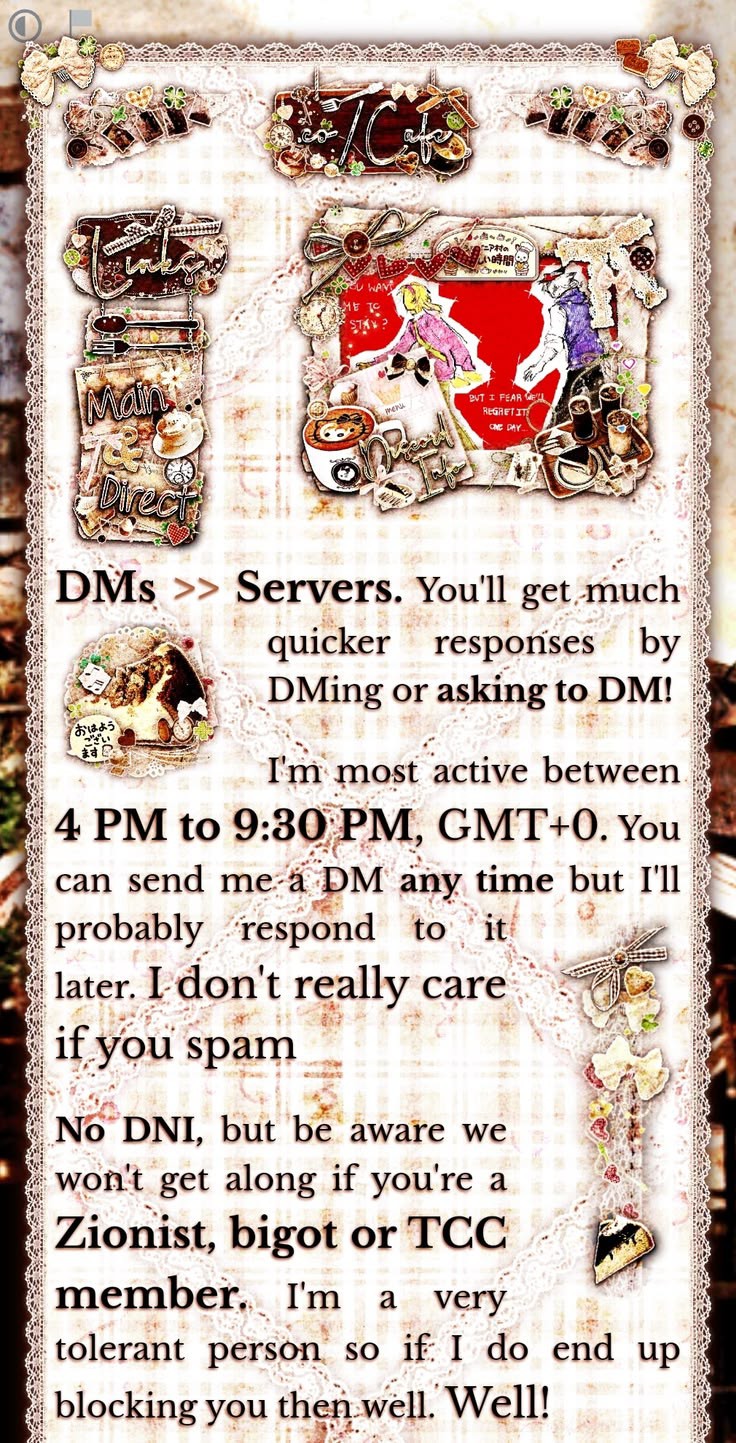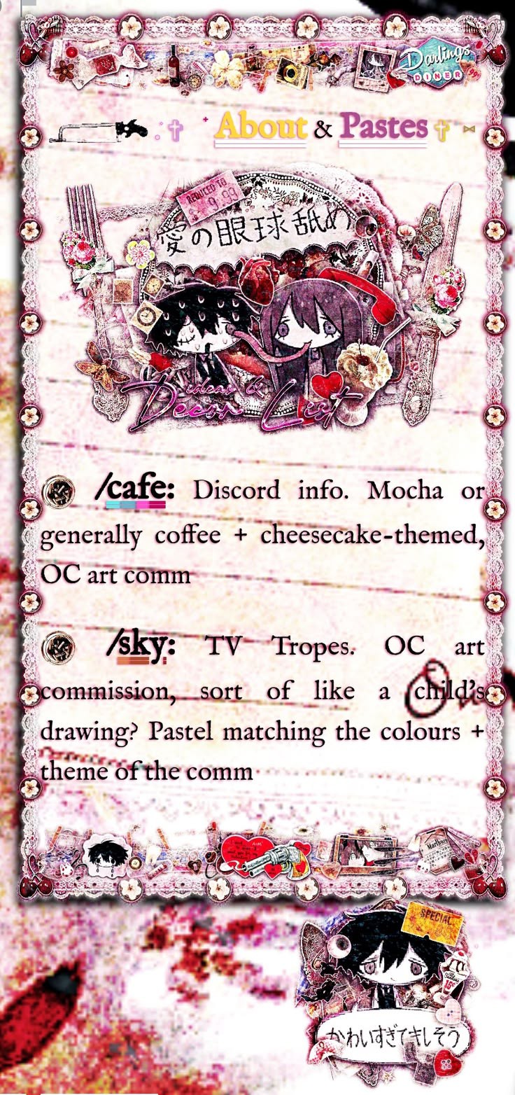 - Payment is done upfront through Ko-fi or PayPal, prices are linked on my Ko-fi. I may also accept other payment methods such as Robux or avatar decorations according to what I'm looking for in the moment.