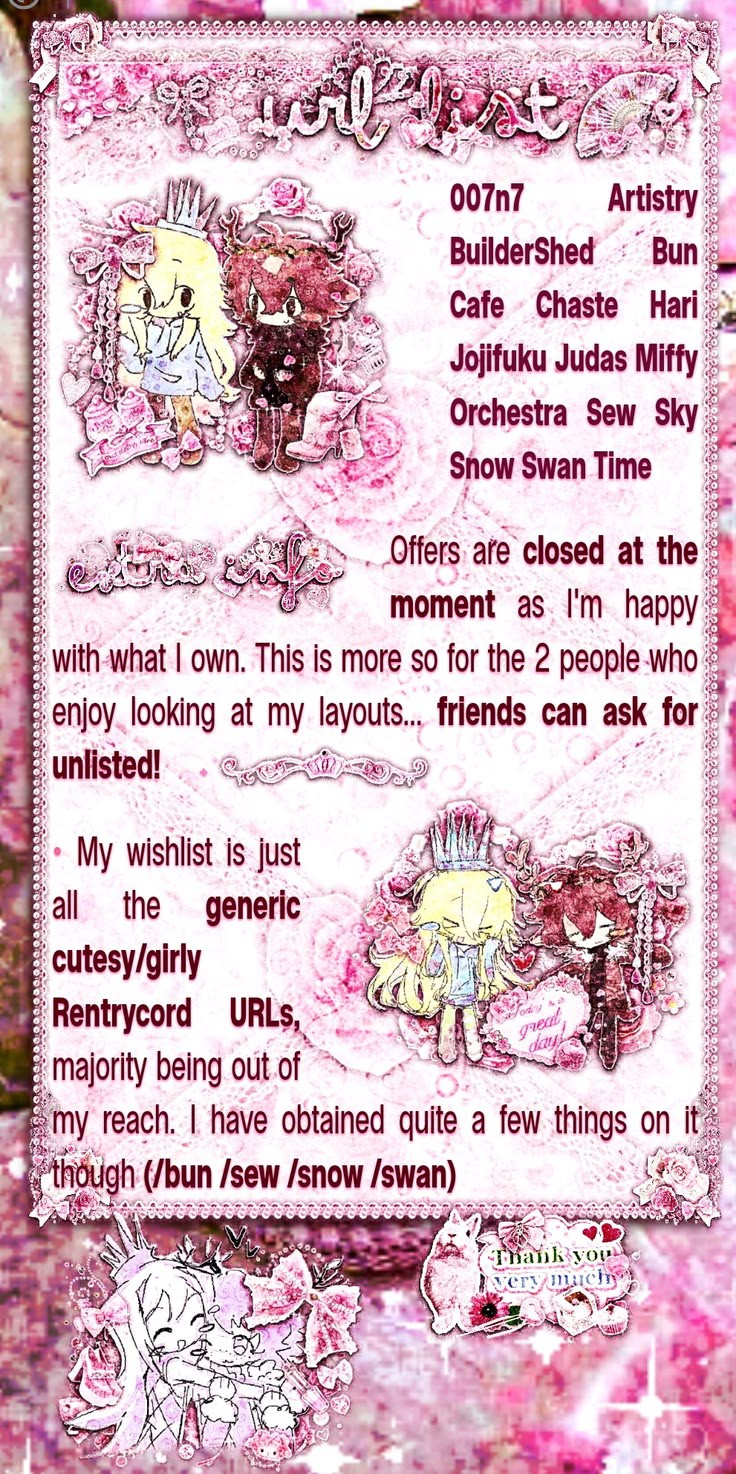 - Changes to Rentries are okay, no matter how big or small they may be. Credit is optional, but don't claim my decor as your own.
