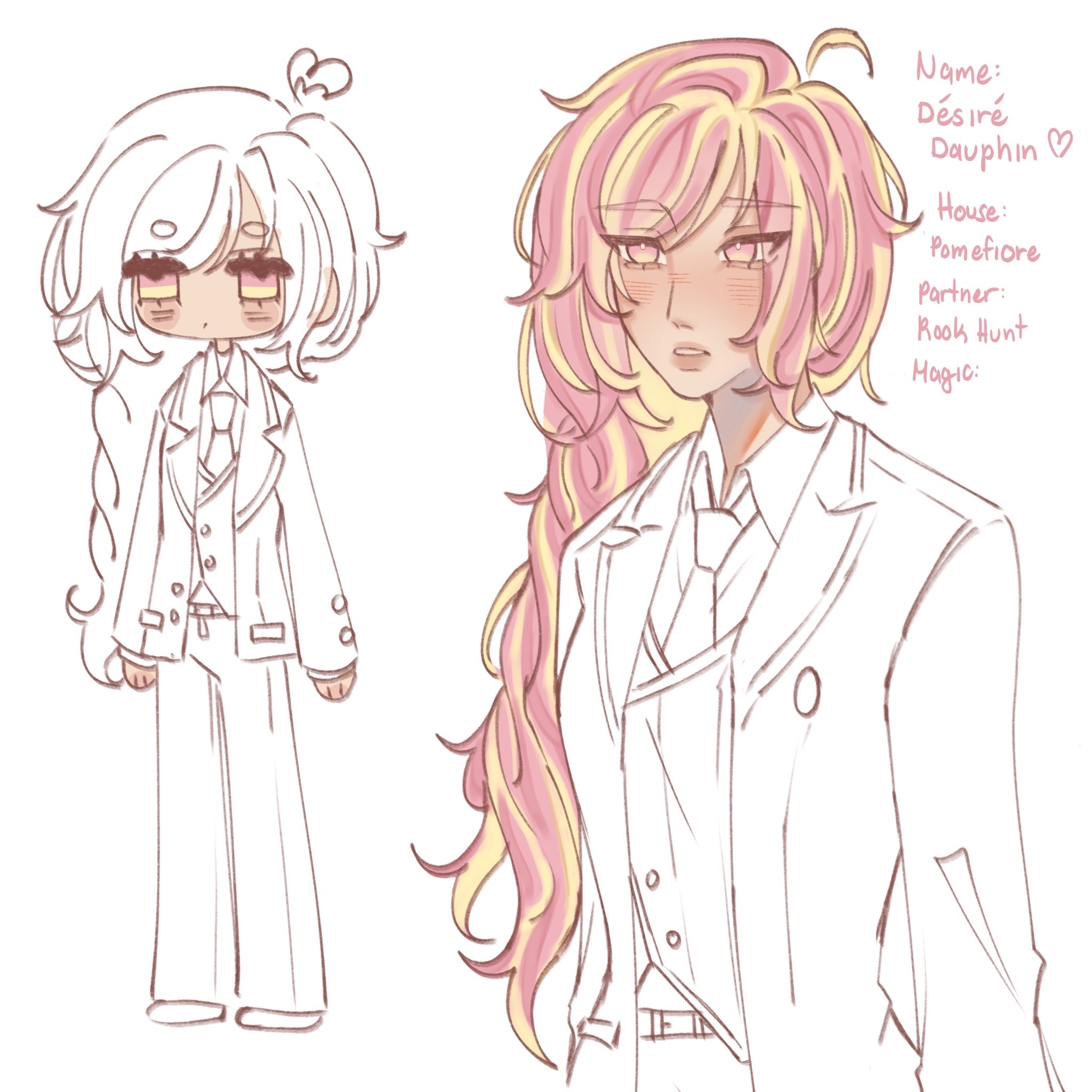 désiré is based off of the prince from snow white! hence her last name dauphin.