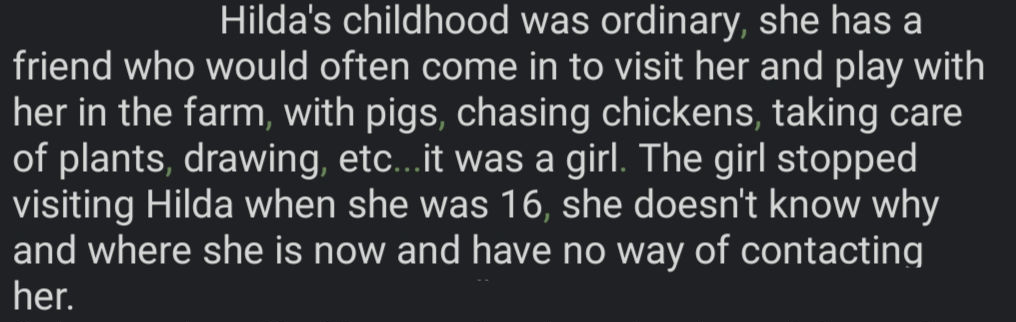 - Tell us about her childhood, how was her upbringing, who are her friends, how is school, the daily life as a kid, as a teen? Does it matter for context?