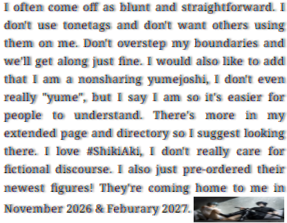 Capricious or Nurse ♀ 17YR Asian ArabFilo Unlabeled & Taken ♡; M/W Shiki + SheAsk INTP 4w5 True ⁿᵉᵘtral DID BPD SYSHOST ♛ Feminine ✞‧₊ IDs