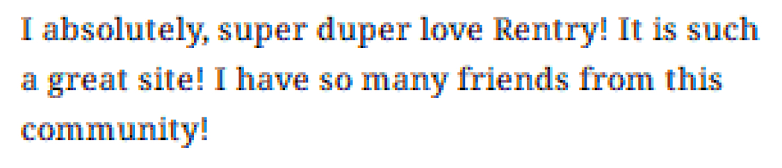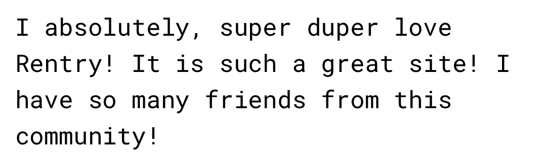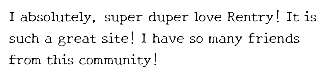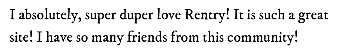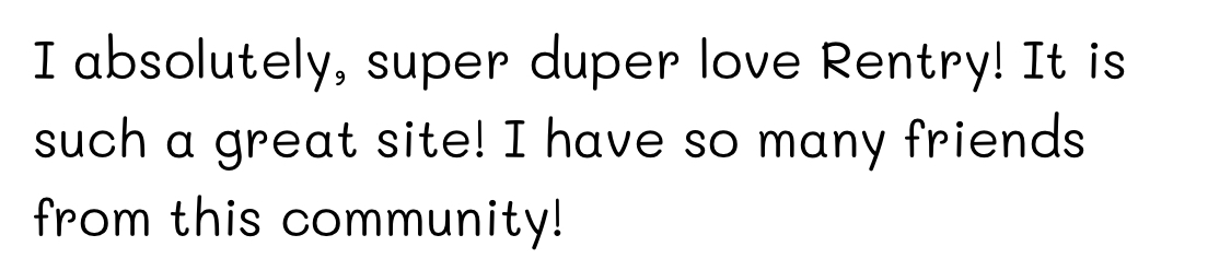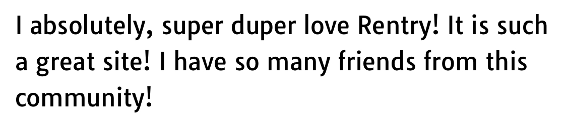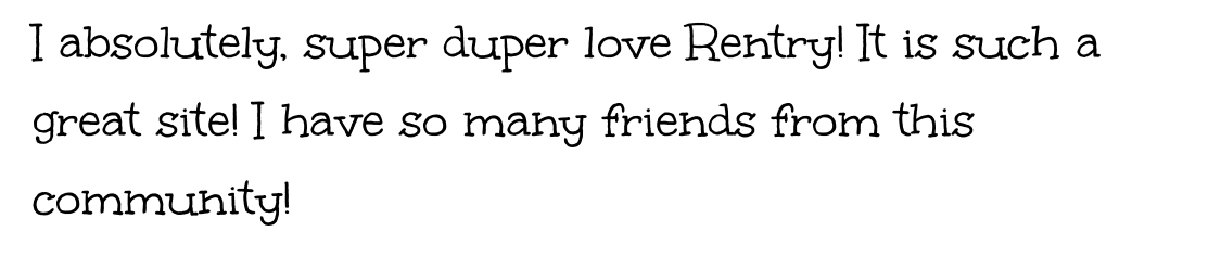 I absolutely, super duper love Rentry! It is such a great site! I have so many friends from this community!