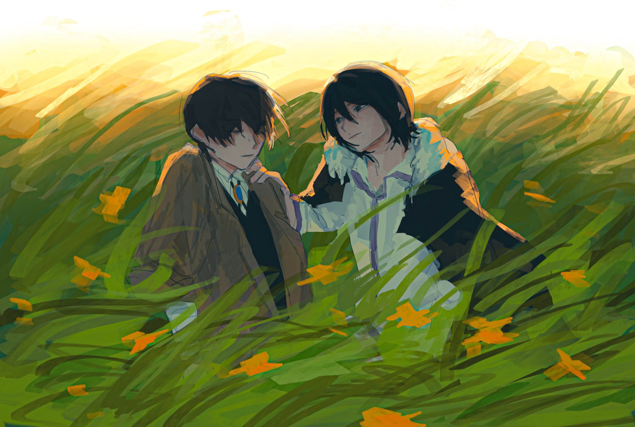 Things that remind me of you: My Chemical Romance, Osamu Dazai, Devi McCallion, Alex G, Sasaki Shuumei, Sunday, Goro Akechi, Kaworu Nagisa, Angelic Themes, Colorful Sunsets, Warm Rain, & This shade of green.