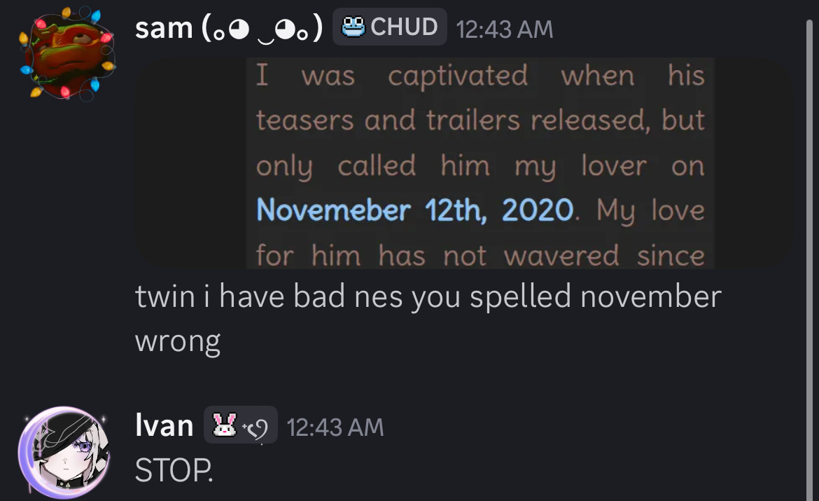 I was captivated when his teasers and trailers released, but only called him my lover on November 12th, 2020. My love for him has not wavered since then and it never will!