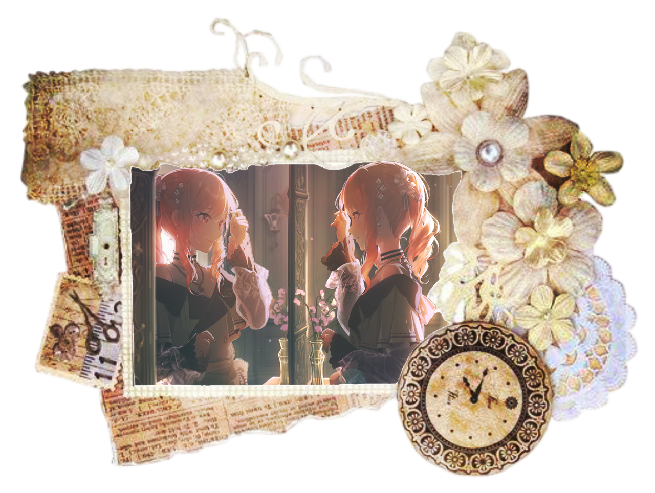 Akiyama Yuuki, Akiyama Mizuki, Shinonome Ena, Momoi Airi, Tenma Saki, Shiraishi An, Kagamine Rin, Megurine Luka, Hatsune Miku, Hikawa Hina, Futaba Tsukushi, Aoba Moca, Imai Lisa, Maruyama Aya, Ib, Mary, Princess Peach, Rosetta, Rarity, Fluttershy, Marie (Aristocats), Osaki Amana, Mayuzumi Fuyuko, Becky Botsford, Wordgirl, Daidouji Tomoyo, Kinomoto Sakura, Akiyama Mio, Hirasawa Yui, Kate Mirror, Hyacine, Herta, March 7th, Evernight, Rozaliya Olenyeva, Liliya Olenyeva, Sayori, Natsuki, Hu Tao, Yoimiya, Albedo, Klee