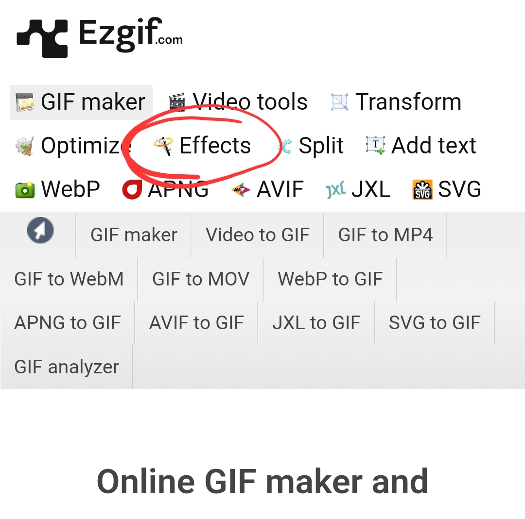 Now go to ezgif.com and go to the effects section then upload your gif