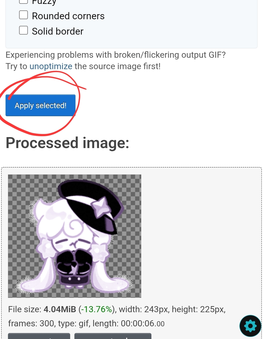 Now apply selected and see how the gif turns out !