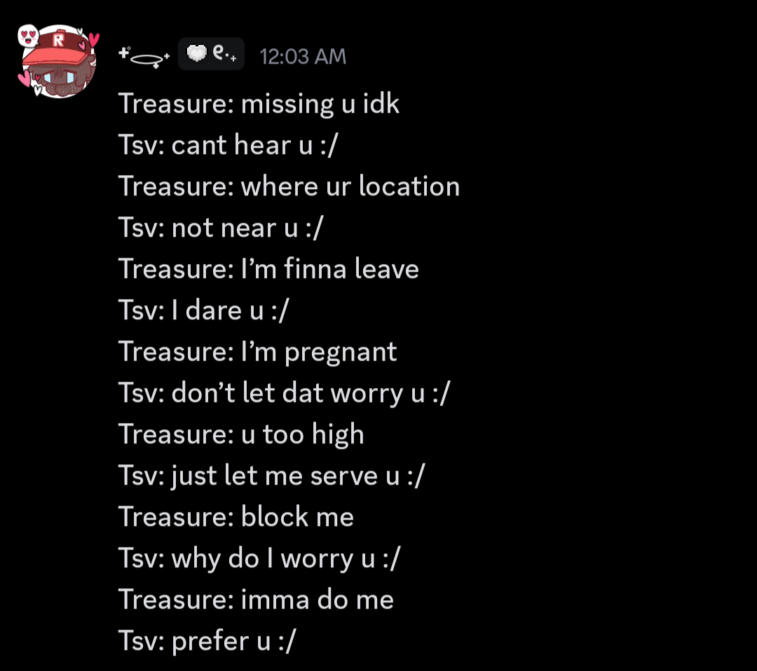 #GodBlessRPFyaoi and god FREAKING BLESS TSVSURE DUDE GOD BLESS DARKSUN 🙏🙏🙏🙏🙏 actually on the note of darksun IM REALLY HAPPY THAT UR LIKE THE ONE PERSON WHO CARES ABOUT WHAT I HAVE TO SAY WHEN IM TALKING ABOUT MY SPECIAL INTERSET/OTP SLOOOOOP ITS MAKES ME SUPER SUPER SUPER SUPER SUPER SUPER HAPPY DID U KNOW 👀👀👀👀 actually OFC UR LIKE THAT CUS UR BETTER THAN EVERYONE ELSE AND UR NOT A FAKE FREAKING FRIEND AND U ACTUALLY CARE ABOUT ME AND WHAT I HAVE TO SAY UNLIKE A LOT OF PEOPLE WHICH IT STILL MAKES ME HAPPY OFC ur freaking pastel sparkles rainbow and ur a unicorn so ur just THAT much better then all these boring normies I LIKE HOW OUR VIBES CONTRAST EACHOTHER, IM LIMINAL SPACE OFFPUTTING VIBES AND UR PASTEL TUMBLR AND SPARKLY #OTP i have so much to type but if i keep going ill be here forever 💔 we recently called and u screenshared and it was so freaking fun dude what do u guys know about screenshare discord calls THE CALL WAS SO FUN USUALLY I HATE GETTING ON CALLS AND I WANNA LEAVE IMMEDIATELY BUT IT WAS SO MUCH FUN treasure gif collection 👀👀👀👀 UR VOICE IS REALLY REALLY CUTE U SOUND JUST LIKE SASHLEY IT MAKES ME REALLY HAPPEN U ARE SOOOO 2017/2019 SASHLEY TO ME i love ur vibe a lot it makes me joyful and nostalgic UR A REALLY REAALLYYY ADORABLE PERSON OVERALL UR VOICE IS CUTE AND THE WAY U TYPE IS CUTE NO ONE CAN COPY UR STYLE EVER no one is more treasure than treasure ITS TRUE !!