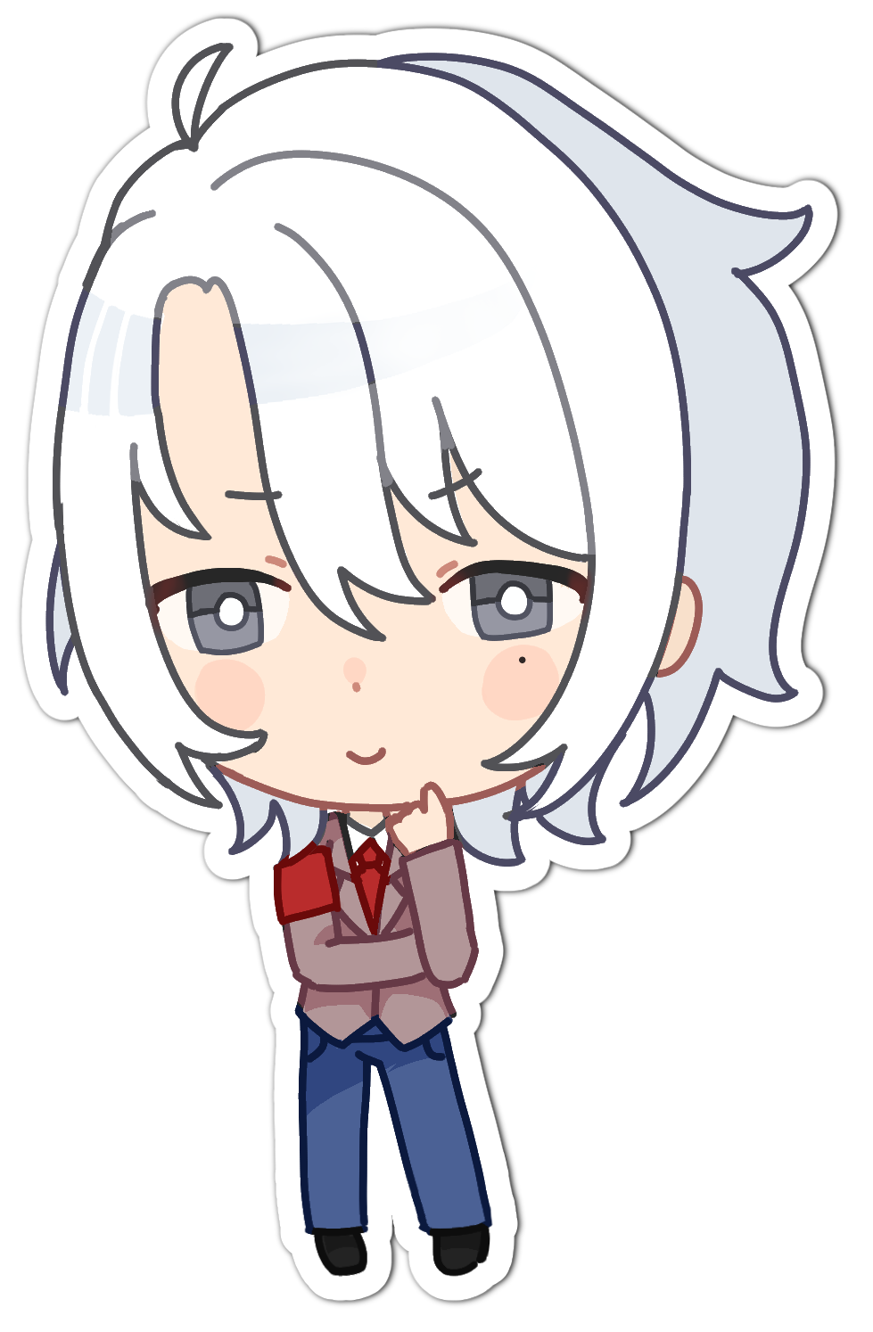 he is arrogant, self-important and cold, he's based off the oresama trope from otome games (much like the dokis are based off dating sim tropes). he's competitive, claiming monika as his rival, the two always seem to be fighting over something! however, he still has a soft spot and infatuation for her, as they're the only two 'real' ones in their world (and also because he just Loves her. stupid straggoy).